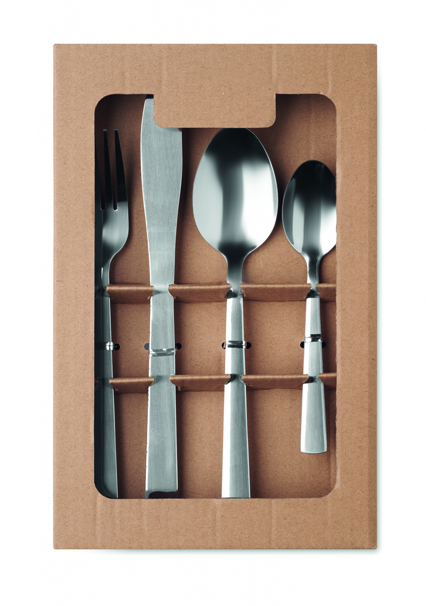 16-teiliges Besteckset aus Edelstahl. Enthält Messer, Gabel, Löffel und Teelöffel für 4 Personen. Lieferung in einer Box aus Kraftpapier.