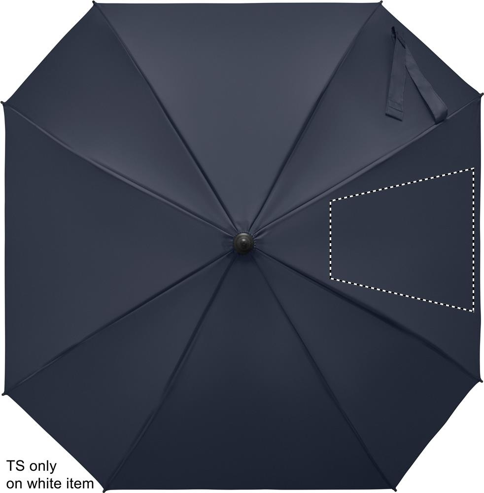 23'' Regenschirm in quadratischer Form aus 190T Pongee Polyester. Windbeständig. Gestell und Schienen aus Fiberglas. Griff aus gummiertem ABS. Automatische Öffnung.