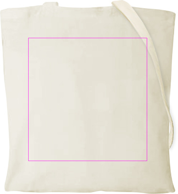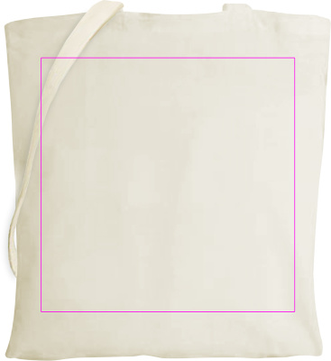Oeko-Tex® STANDARD 100 zertifizierte Baumwolltasche mit einer Grammatur von 140 g/m² und zwei langen Henkeln. Ihr Logo drucken wir in die Mitte der Tasche.