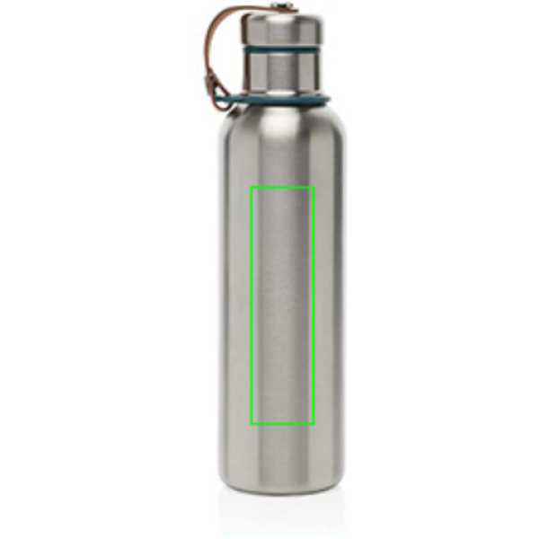 Die isolierte Wasserflasche aus Edelstahl ist eine elegante, vakuumisolierte Flasche, die Getränke bis zu 24 Stunden lang kalt oder bis zu 12 Stunden lang heiß hält. Auch der Deckel ist komplett aus Edelstahl, so dass das Wasser nicht mit Plastik in Berührung kommt. Das Kunstleder dient als Trageschlaufe und ist gleichzeitig ein hübsches Designdetail. Nur Handwäsche
