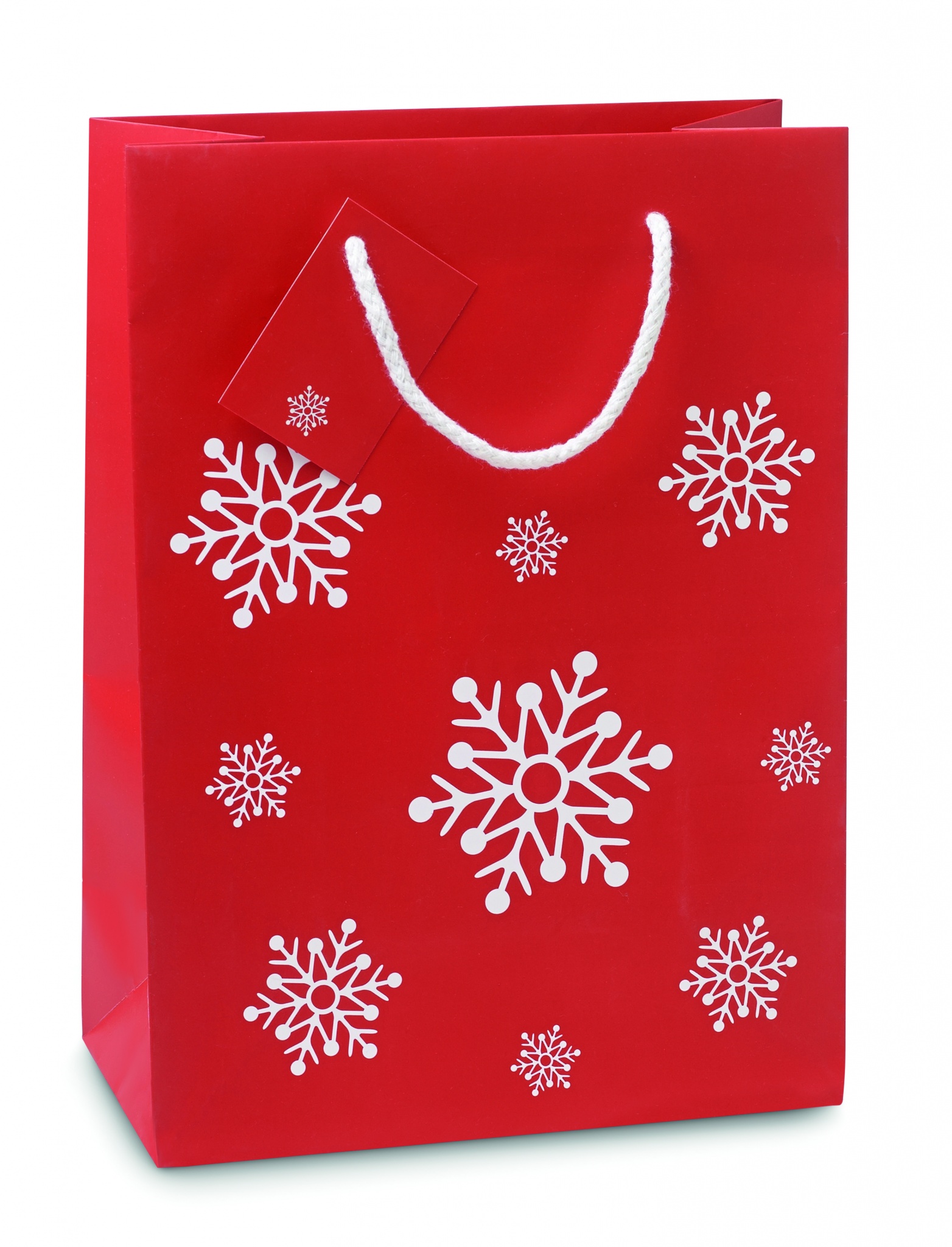 Elegante Geschenkpapiertüte mit Motiv ''Schneeflocke''. Inklusive Geschenkanhänger. Medium.