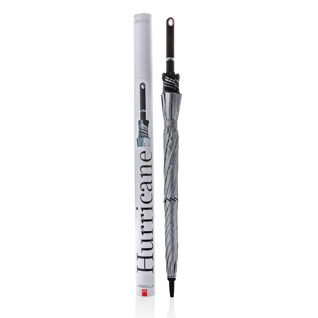 Der 27” Hurricane Regenschirm ist durch seine doppelten Panele der ideale Begleiter für stürmische Wetterbedingungen. Durch sein wasserundurchlässiges Material ist er im Handumdrehen trocken und durch seinen einzigartigen Öffnungsmechanismus kann er mit Leichtigkeit geöffnet und geschlossen werden. Geschütztes Design®