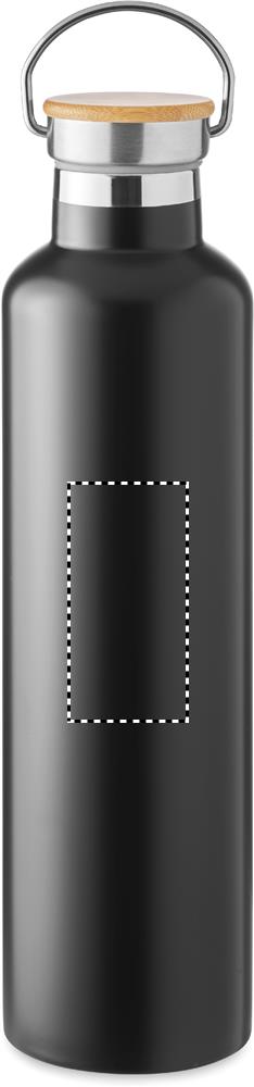 Doppelwandige Isolierflasche aus Edelstahl mit Bambusdeckel und Henkel. Füllmenge: 1000 ml. Bambus ist ein natürliches Produkt, es kann daher zu leichten Abweichungen in Farbe, Dekor und Maßen kommen.