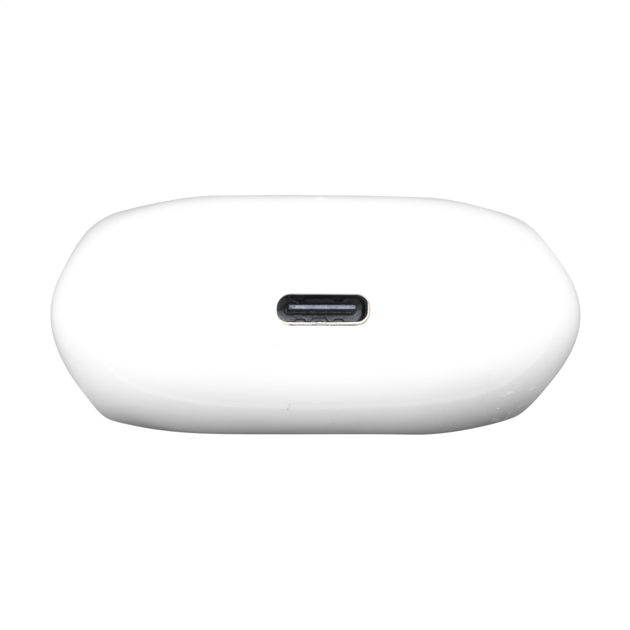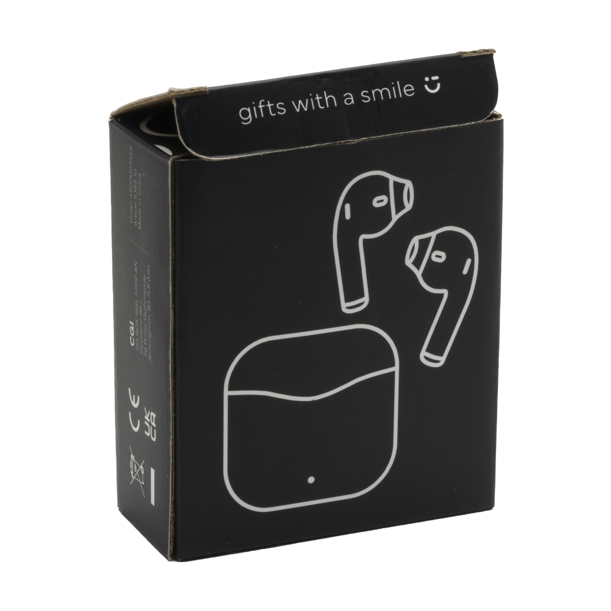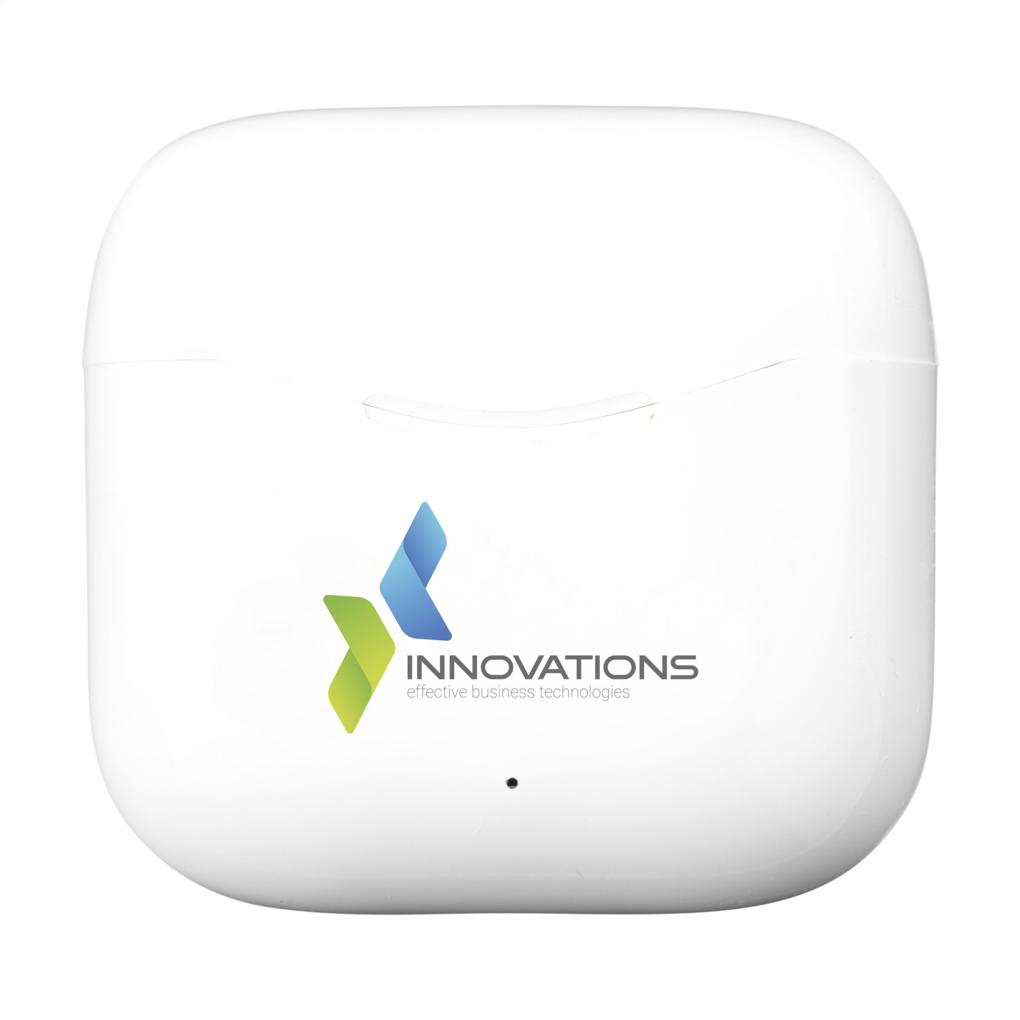 Echte kabellose Ohrhörer der nächsten Generation in einem Ladeetui aus recyceltem ABS. Diese Ohrhörer verwenden BT 5.1 für eine reibungslose Verbindung. Die Ohrhörer haben einen 30-mAh-Akku und benötigen mit dem 200-mAh-Ladeetui nur eine Stunde zum Aufladen. Hervorragende Klangwiedergabe und einstellbare Lautstärke sind mit Autopairing-Technologie gekoppelt, die automatisches Pairing und Touch-Steuerung bietet. Telefonieren Sie ganz einfach freihändig und genießen Sie Musik ohne einschränkende Kabel. Die Verbindung hat eine Reichweite von 10 Metern. Enthält ein PVC-freies Ladekabel Typ C und eine Bedienungsanleitung. RCS-zertifiziert. Gesamtanteil recycelter Materialien: 62,5 %. Jeder Artikel ist einzeln verpackt.