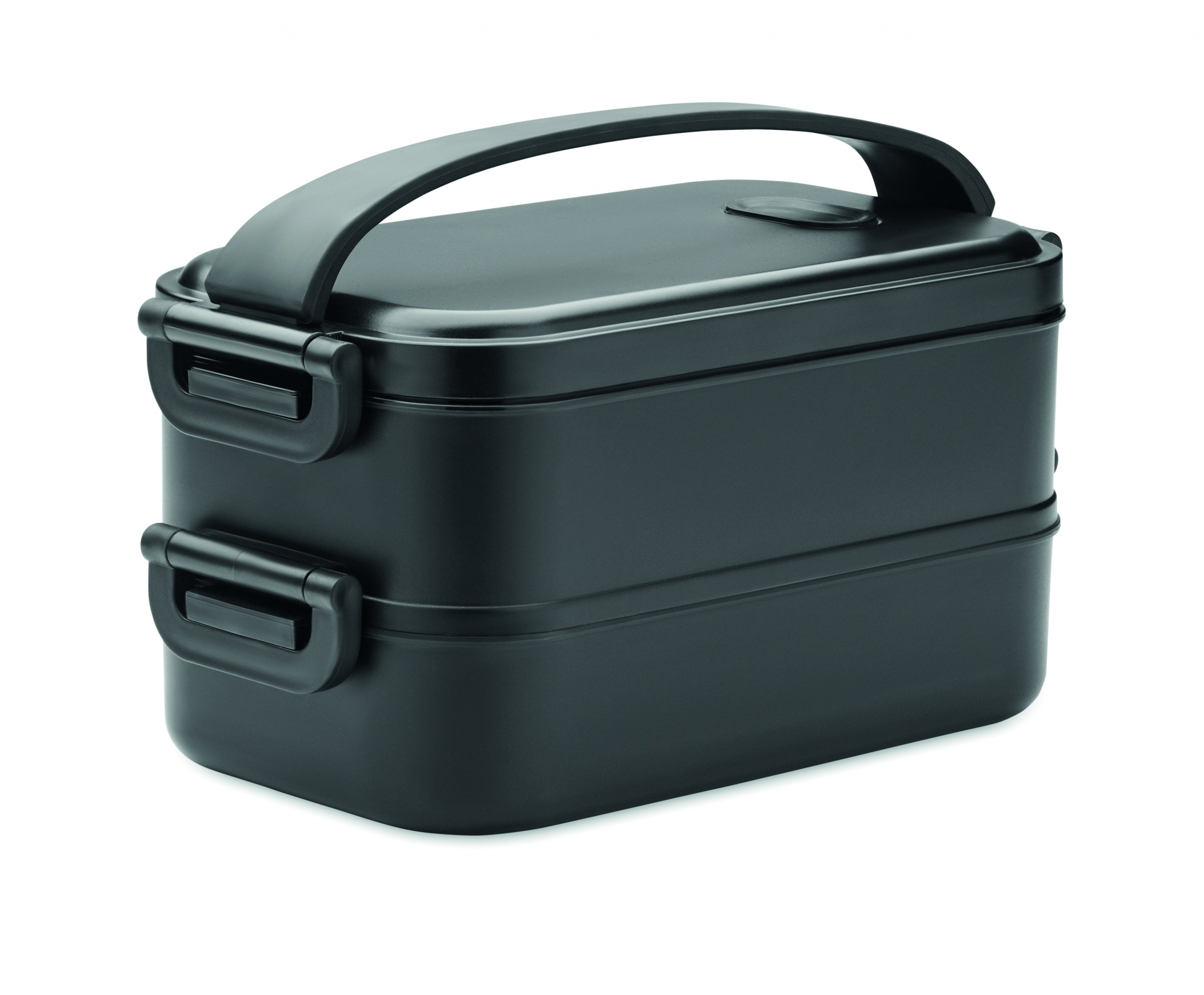 Lunchbox aus recyceltem PP mit 2 Ebenen. Inkl. herausnehmbarer Trennwand, seitlichen Halteklammern und luftdichtem Deckel. Füllmenge: 800 ml (2x).