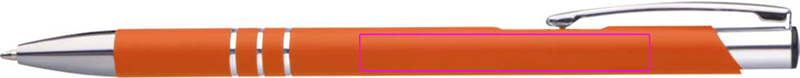 Schlanker Metallkugelschreiber mit Rubber-Finish und blauschreibender Kunststoffmine. Ihre Werbung wird unterhalb des Clips eingraviert.
