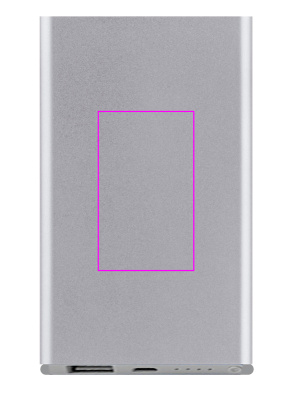 Aluminium-Powerbank mit 4.000 mAh Ladekapazität, Ladestandsanzeige, Multiplug-Ladekabel (Lightning, USB Type C und Micro-USB). Ihre Werbung wird eingraviert.
