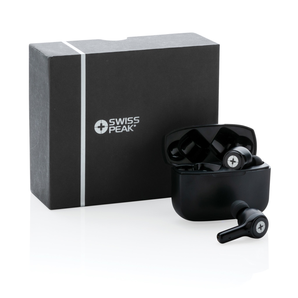 Swiss Peak ANC TWS-Ohrhörer aus RCS recyceltem Kunststoff, Schwarz