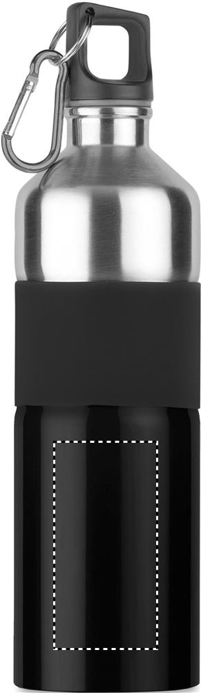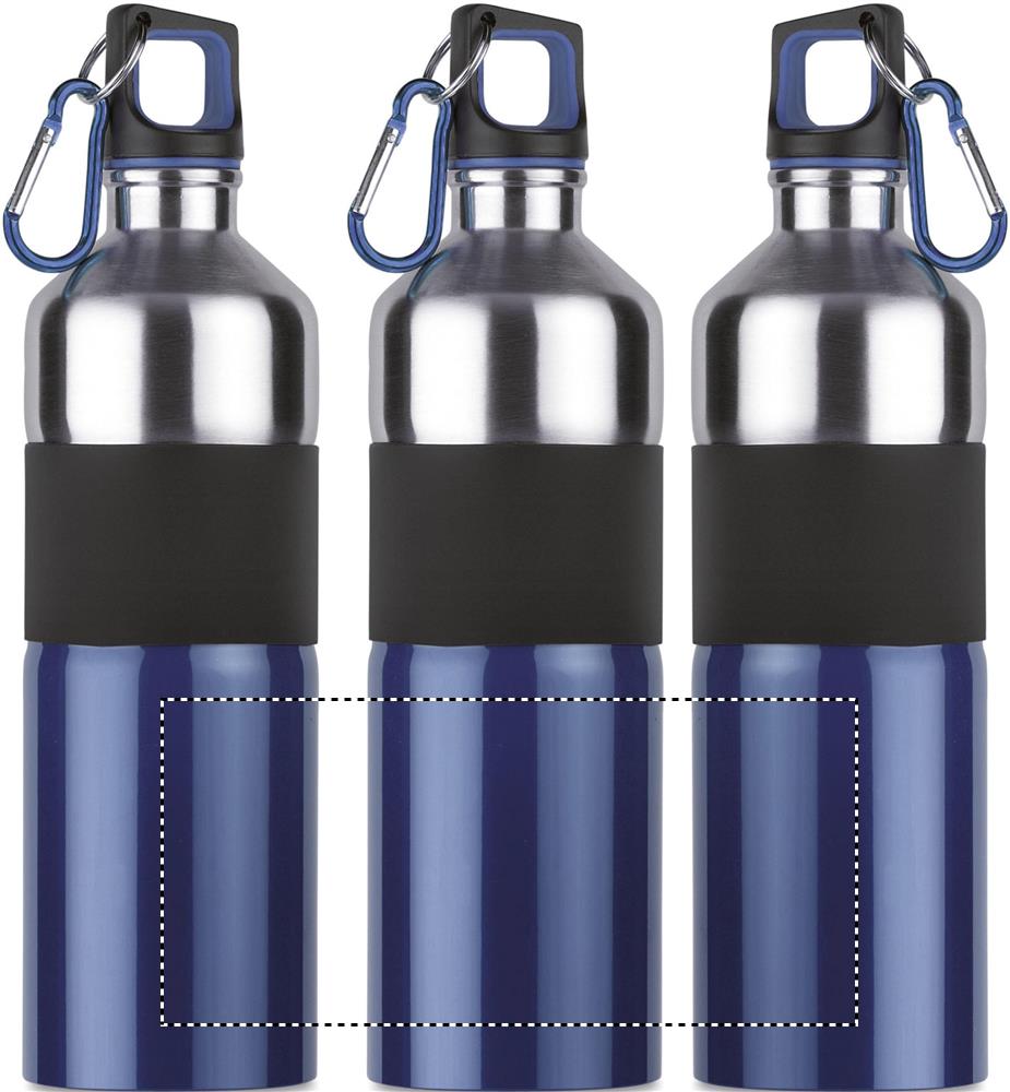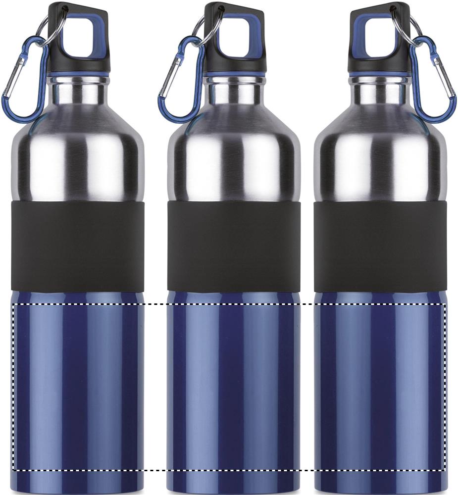 Zweifarbige, einwandige Trinkflasche aus Edelstahl mit gummiertem Griffteil und Karabiner. Füllmenge: 750 ml. Der Karabiner ist NICHT als Sicherung beim Klettern geeignet. Auslaufsicher.