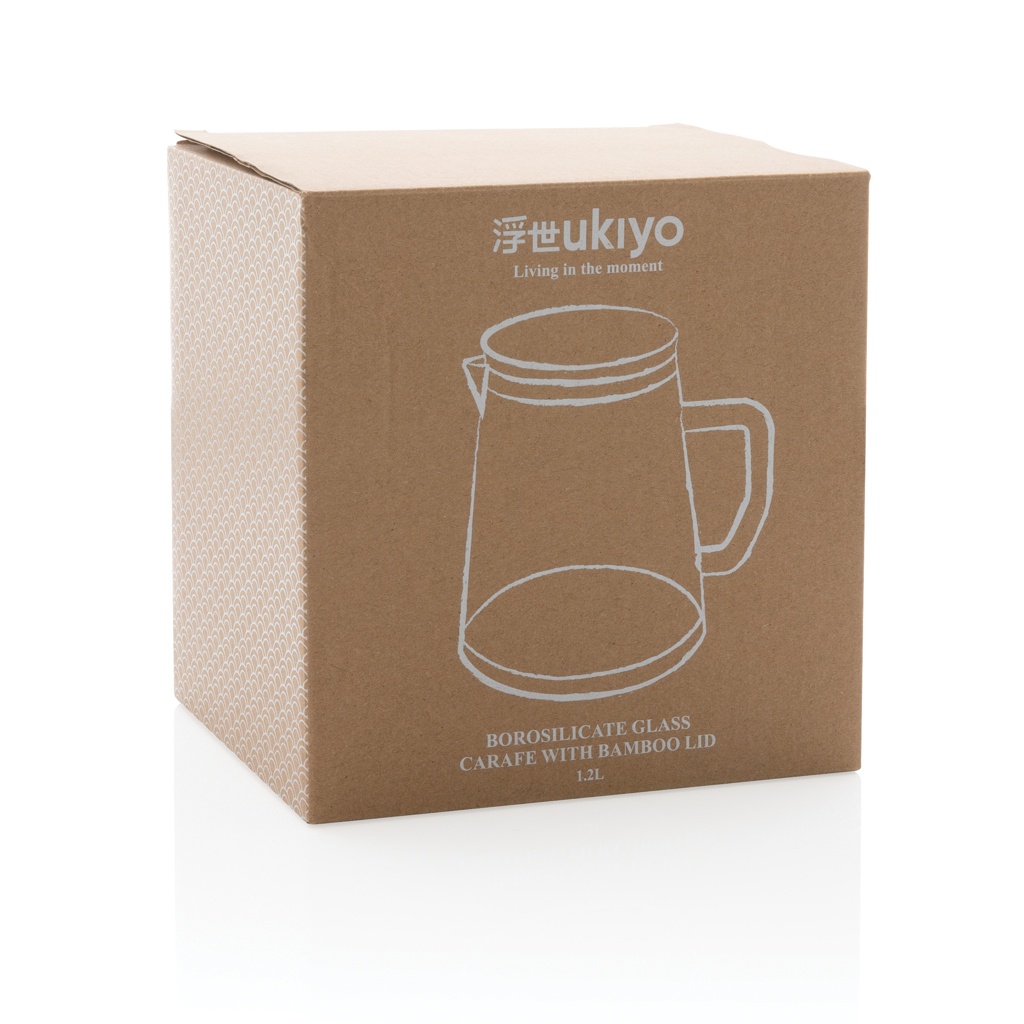 Produkte Nachhaltige Werbeartikel Ukiyo Borosilikat-Glaskaraffe mit Bambusdeckel 1.2L