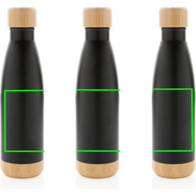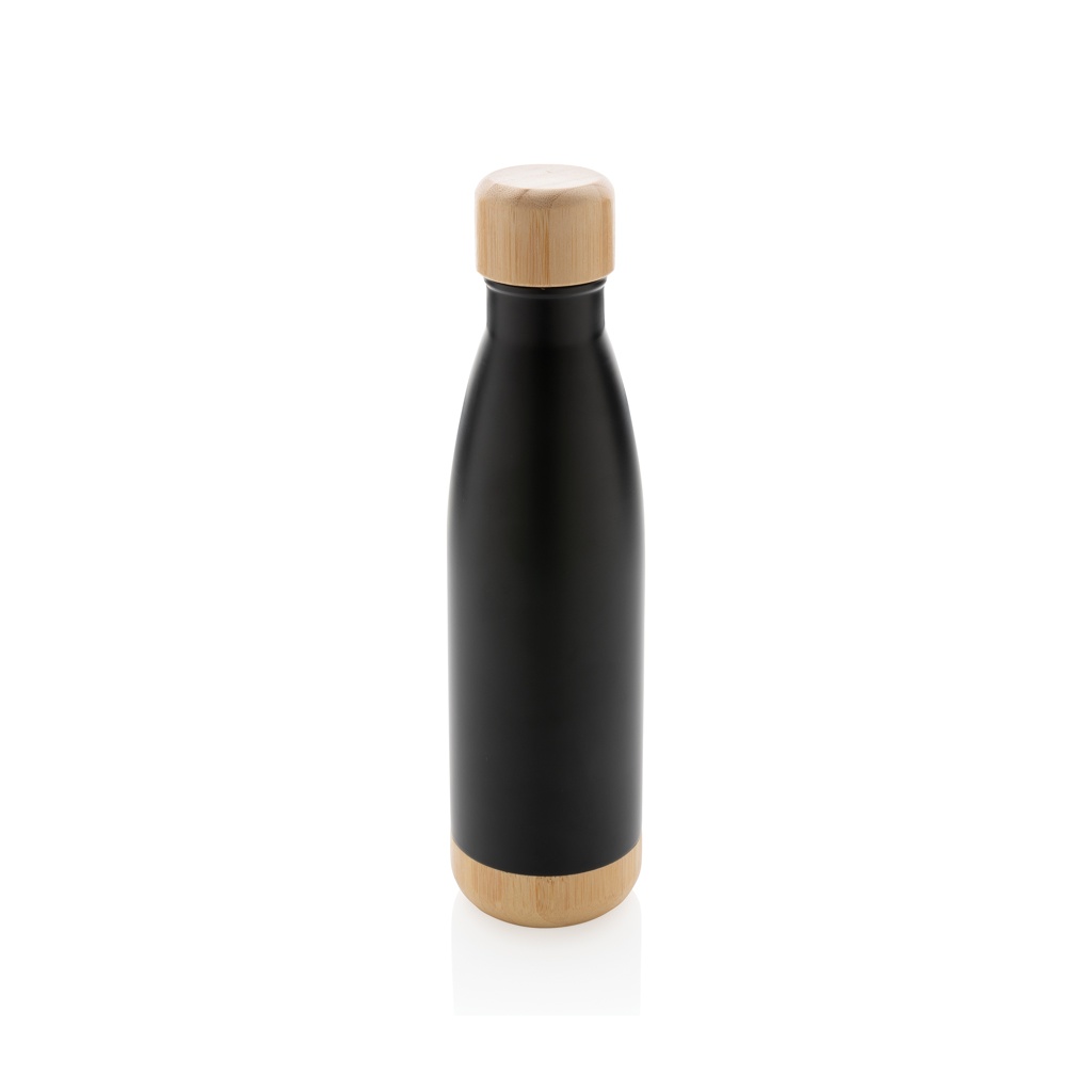 Vakuum Edelstahlfasche mit Deckel und Boden aus Bambus, Schwarz