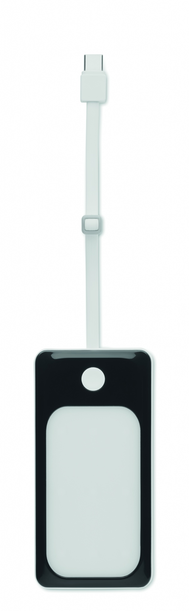 Power bank 10000 mAh capacity in abs casing. Output current DC5V/2A 1x type A and 1x type C in/out. Includes indicating 4 light setting (9 COB led) and integrated USB cable with Type C plug output. PD 22,5W support with battery display.