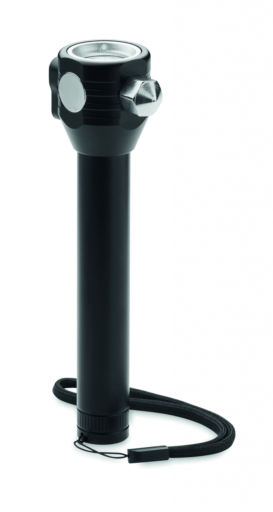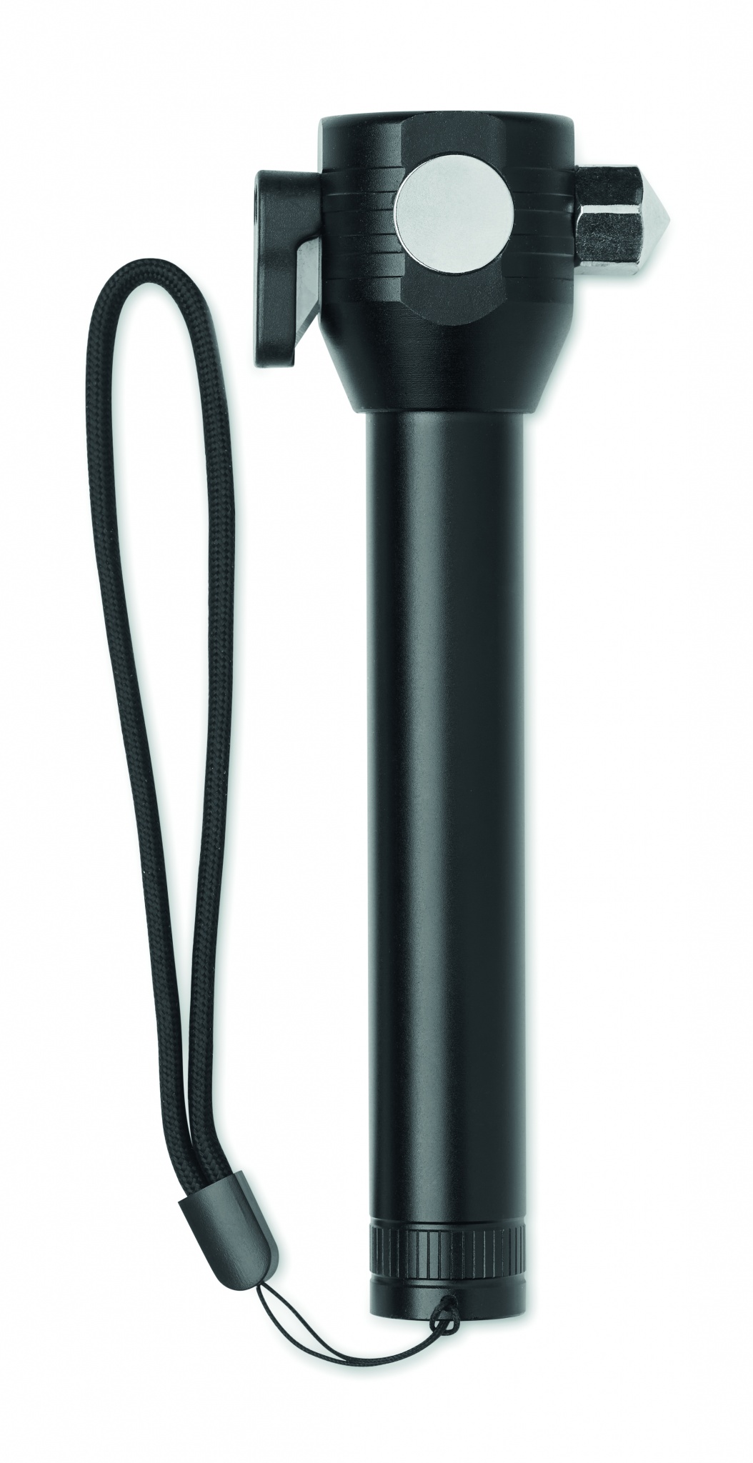 Logo trade promotional product photo of: 3-in-1 aluminum flashlight with an emergency hammer and seatbelt cutter, customizable with printing