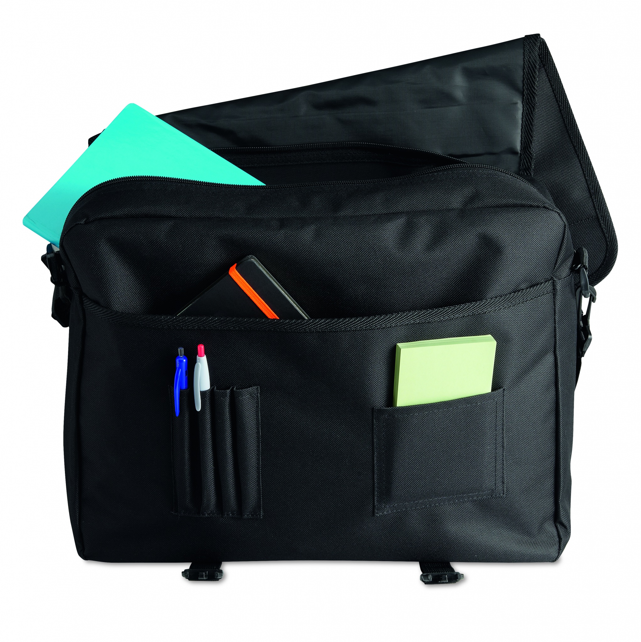 Document flap bag in 600D polyester with zipped main compartment and several pockets with an adjustable and detachable shoulder strap.
