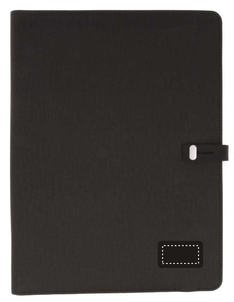 A4 conference folder portfolio in linen-PU with clasp closure. DC5V/1A wireless charging. 4000 mAh power bank with a micro USB to a type C connector. 20 lined sheets notpad. Card holder. Pen holder. Black aluminium plate ideal for your logo.
