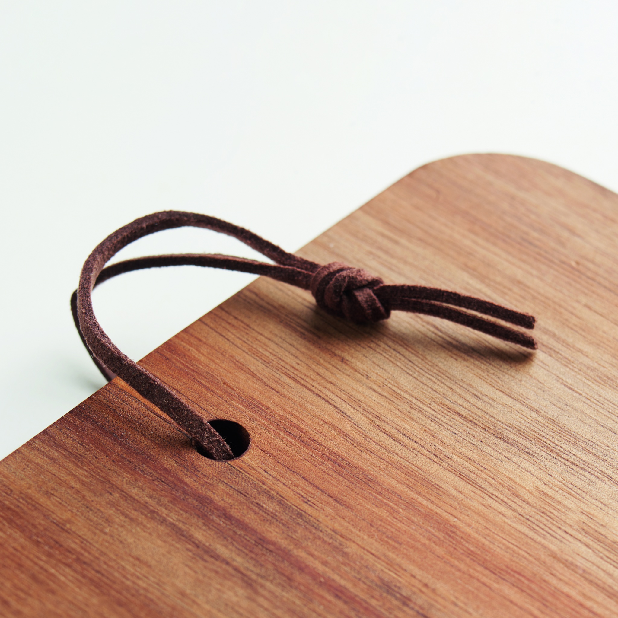 Acacia wood cutting board with PU cord. Wood is a natural product, there may be slight variations in colour and size per item, which can affect the final decoration outcome.
