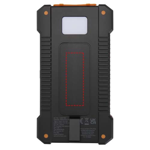 Logotrade promotional product image of: Altair 5000 mAh 10W recycled plastic rugged solar power bank with built-in torch