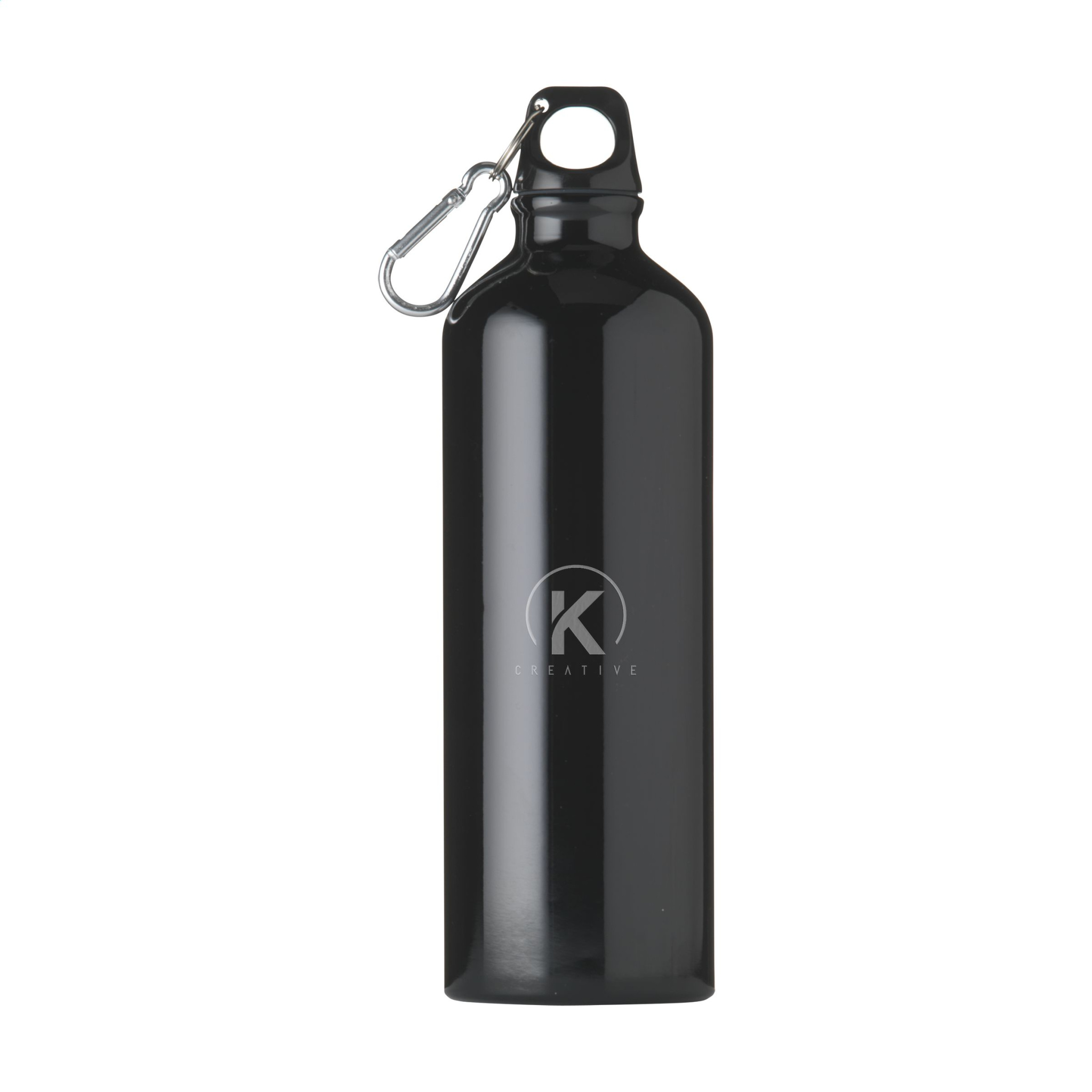 WoW! Single-walled water bottle made from recycled aluminium. With high gloss finish, plastic screw top with keyring and metal carabiner. The carabiner is not to be used for climbing. Leak proof. GRS-certified. Total recycled material: 88%. Capacity 750 ml. By using recycled aluminium, fewer new raw materials are used during the production of this product. This means less energy consumption and less use of water. A responsible choice.