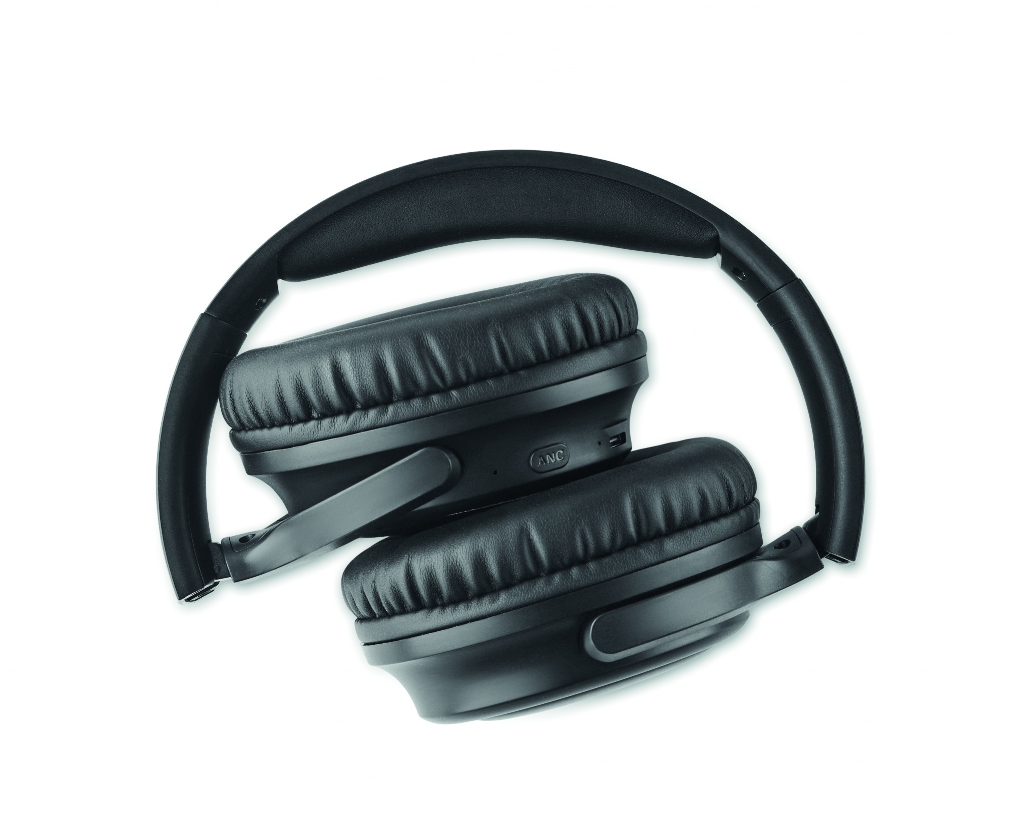 Active noise cancelling (ANC) 5.3 wireless foldable headphones in ABS. Hands free function and built-in microphone. Playing time approx. 17 hours. Includes micro USB charging cable. Rechargeable 200 mAh Li-ION battery. All presented in PU pouch. Operating range: 10 m.