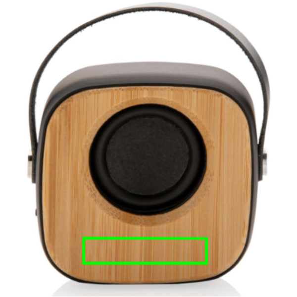 Natural bamboo 3W speaker with built-in 500 mAh lithium battery. With playing time up to 4 hours on one single charge and operating distance of 10m using BT5.0. Made from natural bamboo, ABS with soft touch finish and PU strap.