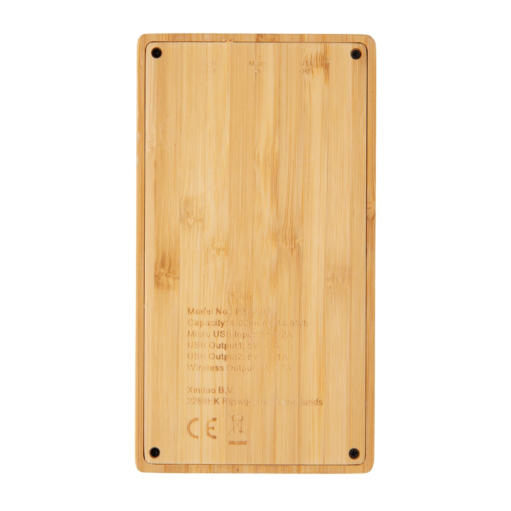 Logo trade promotional merchandise picture of: Bamboo 4.000 mAh wireless 5W Powerbank