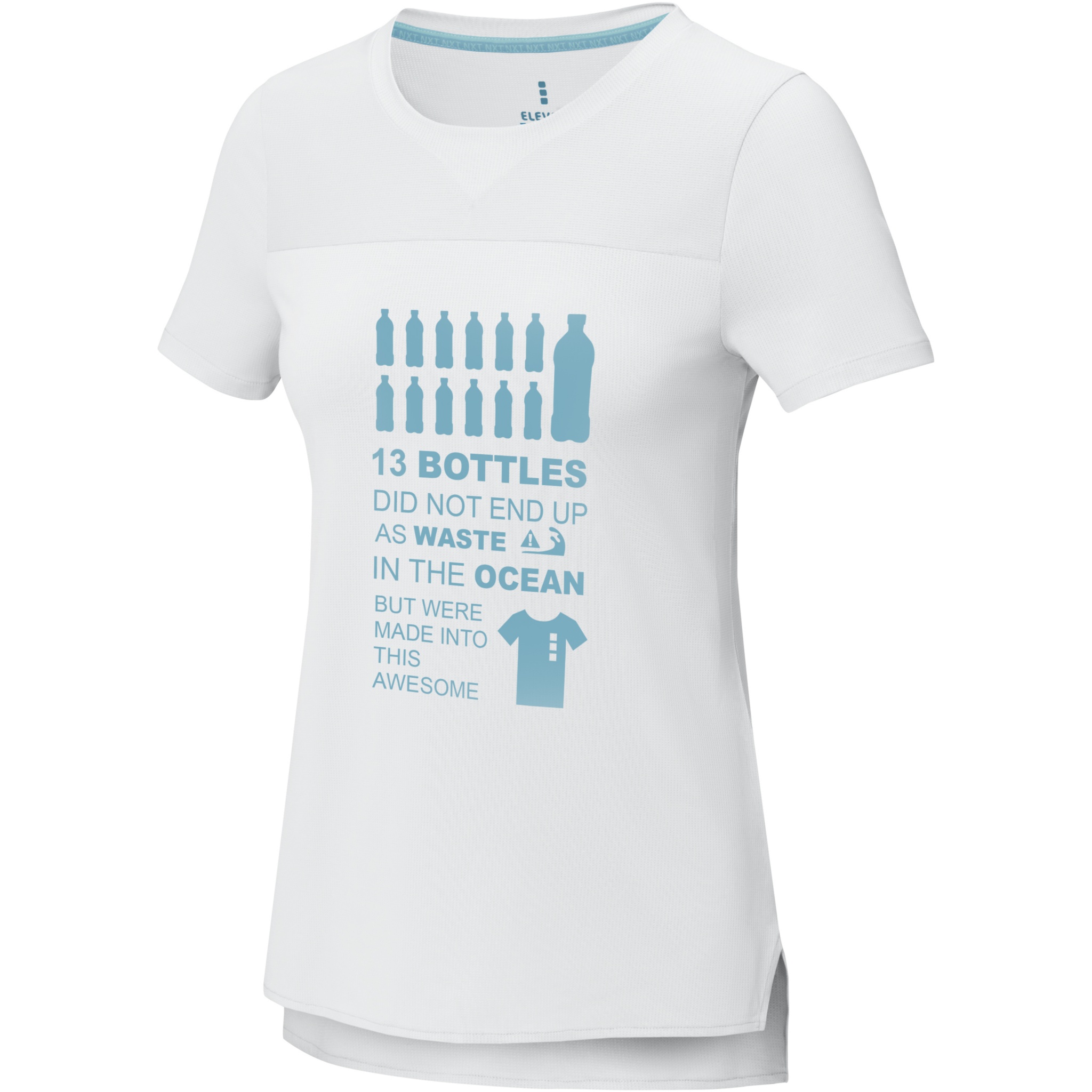 The Borax short sleeve women's cool fit t-shirt is the perfect blend of style, sustainability, and sporty performance. Made from 90% GRS certified recycled materials, blended with elastane to ensure stretch and comfort with a fabric weight of 160 g/m². The cool-fit finish helps keeping cool and dry. The GRS certification ensures a 100% certified supply chain from raw material to our printing techniques, making this garment an eco-friendly choice.