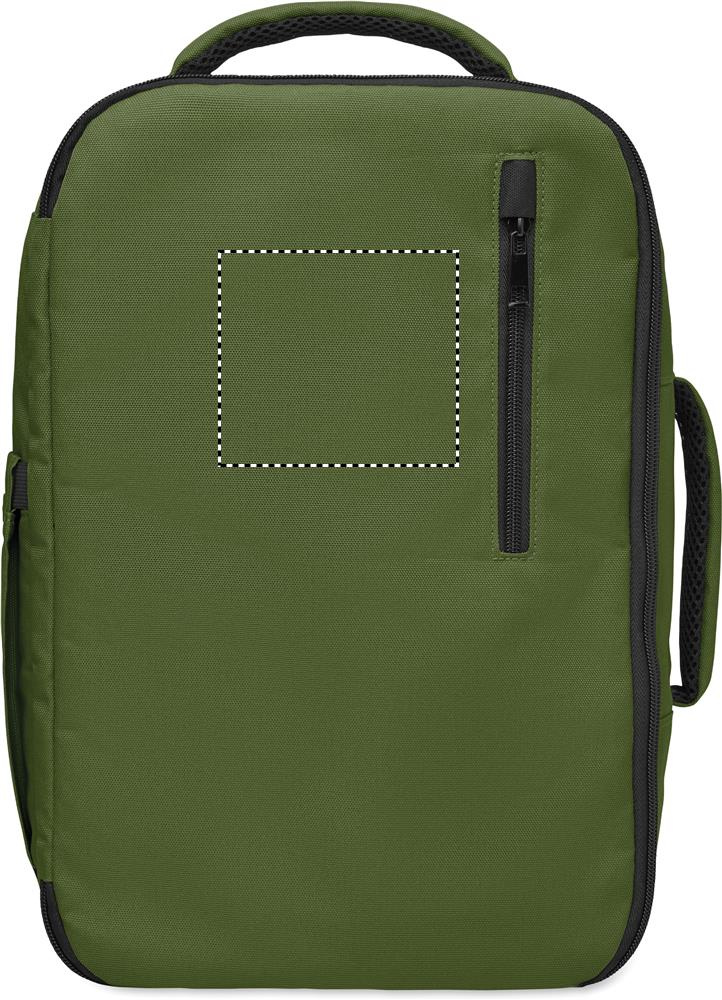 "Cabin-size carry-on extendable backpack made of 600D RPET polyester with 180o opening. Features a main compartment with two open sections, mesh division, padded 15"" laptop pocket, and luggage strap."