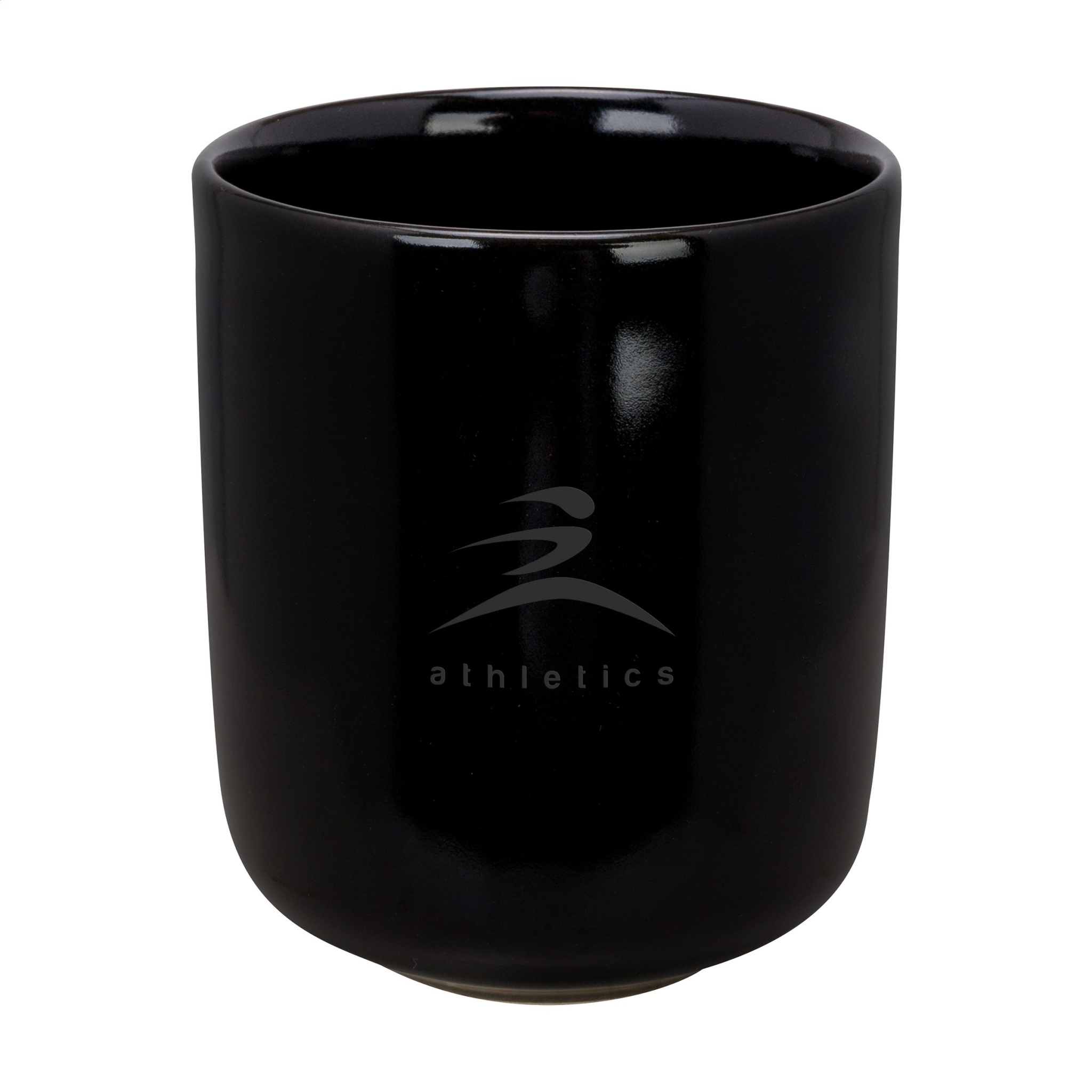 Large, sturdy, high-quality ceramic mug without handle. This practical mug has a timeless design, is comfortable to hold and is supplied with a semi-matte finish. Dishwasher-safe. Capacity 350 ml. The imprint is tested and certified dishwasher-safe: EN 12875-2. Each item is supplied in an individual brown cardboard box.