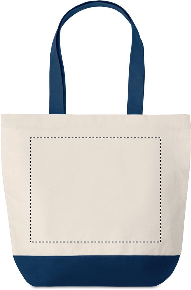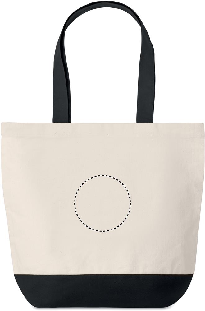 Canvas 280gr/m² shopping beach bag with coloured bottom detail and matching handles (inside pocket).