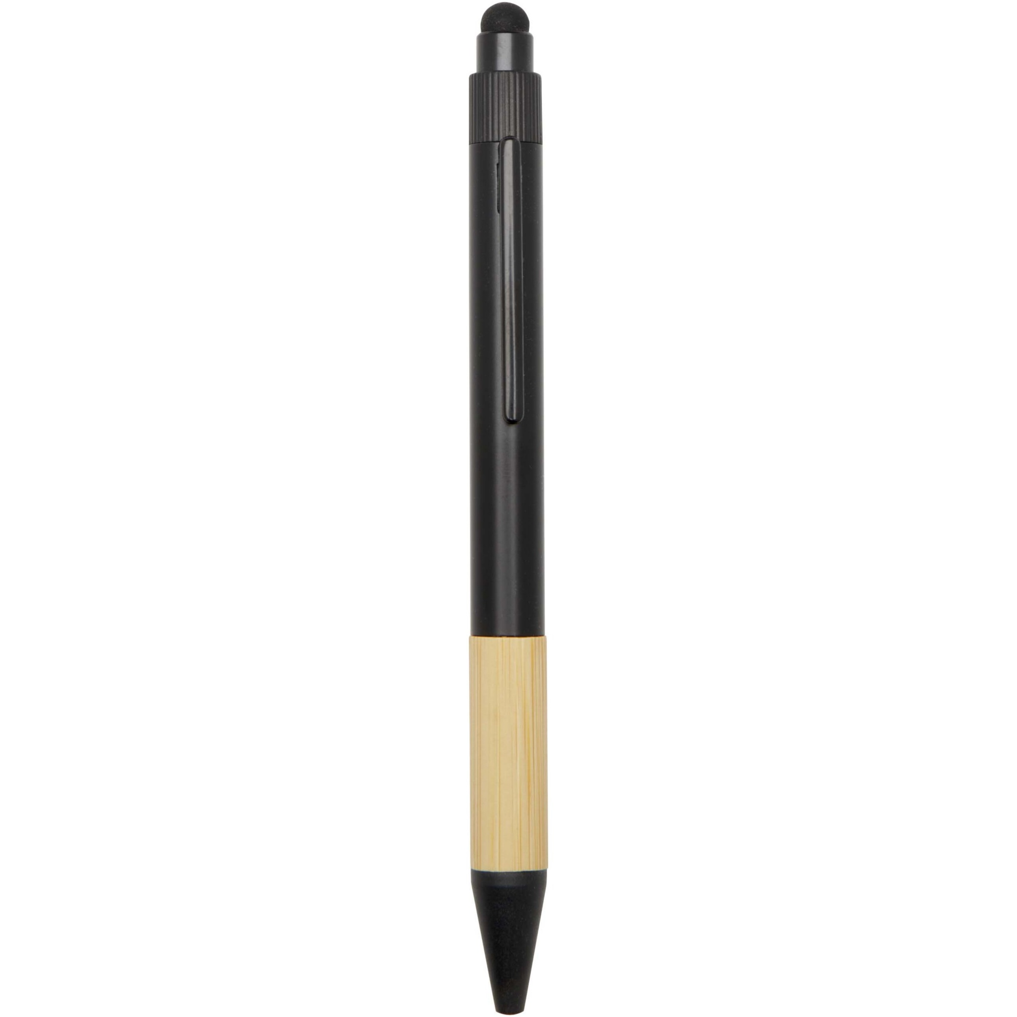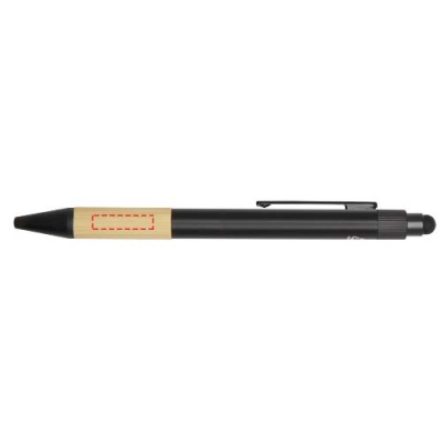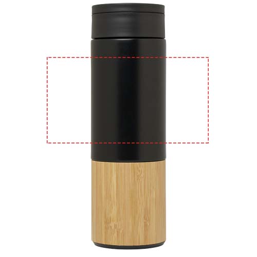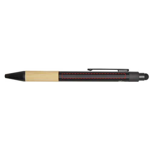 The Carmen gift set includes an A5 hard cover notebook, a ballpoint pen, a water bottle, and an umbrella. The notebook has a black elastic closure and a ribbon marker, and 80 lined cream-coloured sheets of 80 g/m² paper. The notebook cover together with the bamboo semicircle functions as a phone stand. The ballpoint pen is made of RCS certified recycled aluminium with a black spray coating and bamboo grip. Pen ink: Black. Writing length: 1000 metres. The 450 ml water bottle is made of stainless steel with a bamboo accessory at the bottom. Hand wash only. Bottle size: 6.6 x 22.2 cm. The 21" umbrella has a black pongee fabric canopy, black metal shaft, black fiberglass ribs, and a bamboo handle. Umbrella size: 28.3 x 5.5cm. Gift box size: 36 x 30 x 8 cm.