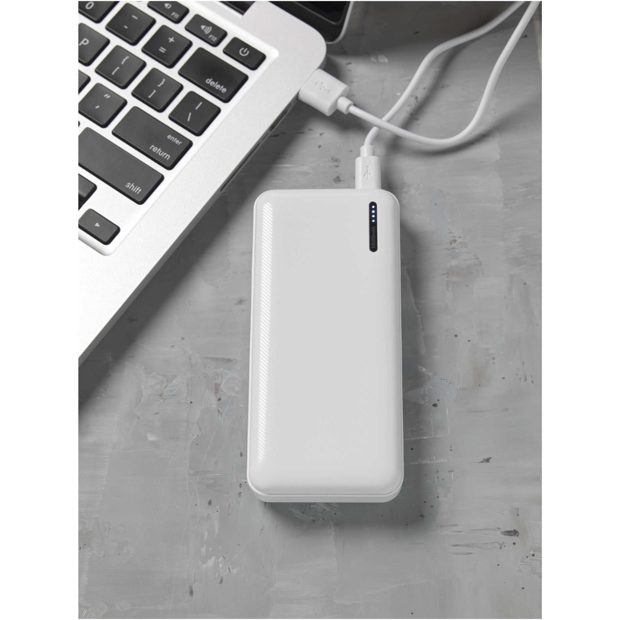 The Compress 10.000 mAh high density power bank is very compact which makes it ideal for on the go. It packs a 10.000 mAh grade A Lithium Polymer battery with an output of 5V/2A. The power bank can be charged via Micro USB or USB type-C. The LED indicator lights up during charging and displays the remaining battery capacity in the power bank. Includes a USB to Micro-USB charging cable.