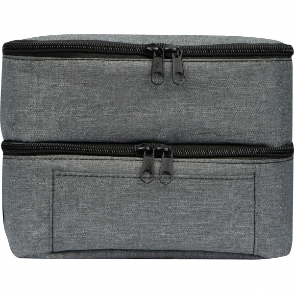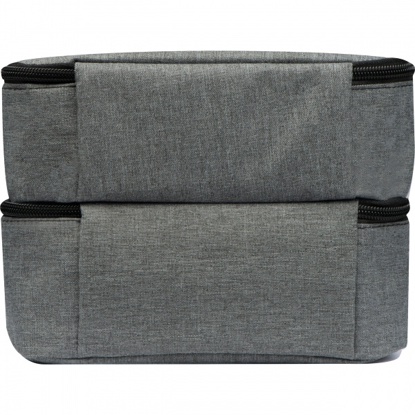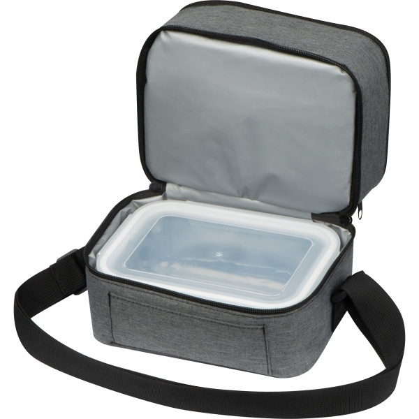 The ideal companion not only for the lunch break. This two-part polyester cooler bag has a precisely fitting glass lunch box (1.000 ml) in its lower compartment. Thanks to the insulation of the bag, the food can be kept warm for longer and not just cooled. We'll print your logo on the top.