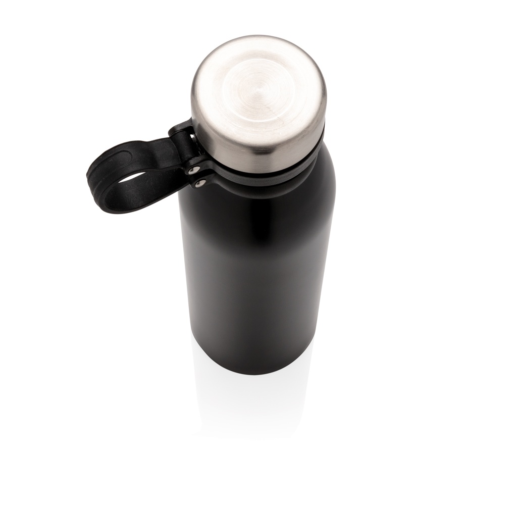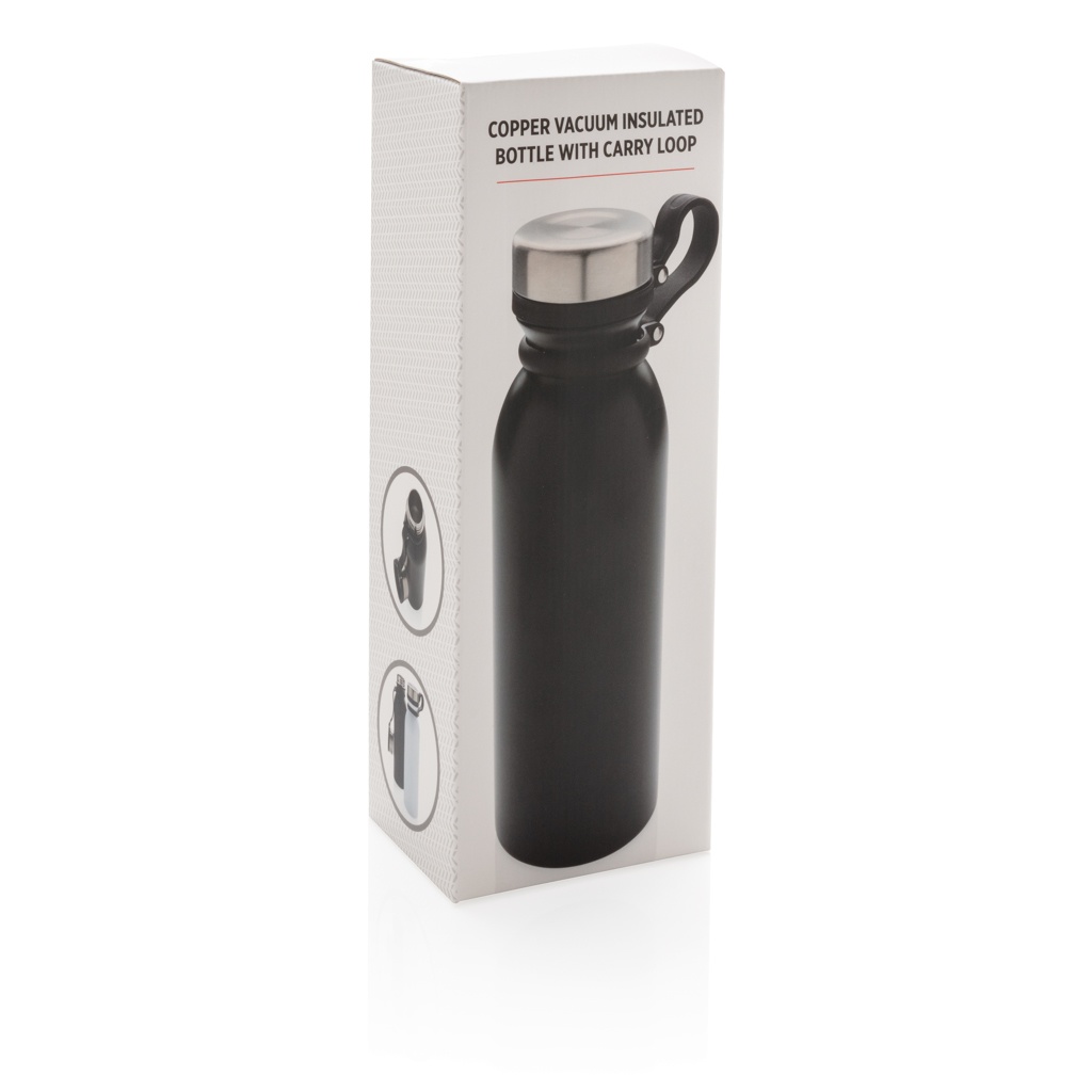 Copper vacuum insulated bottle with carry loop, black