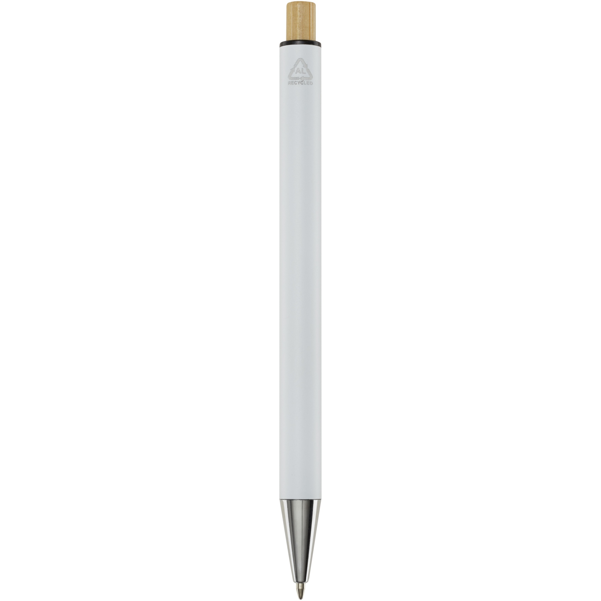 The Cyrus ballpoint pen is made from recycled aluminium, which requires less energy than producing aluminium from raw materials. It also reduces the amount of waste in landfills and helps to conserve natural resources aiming to reduce greenhouse emissions. The push button is made of bamboo. Ink colour: Blue. Writing length: 800 metres. Nib size: 1.00 mm.