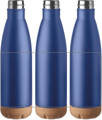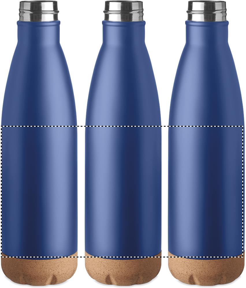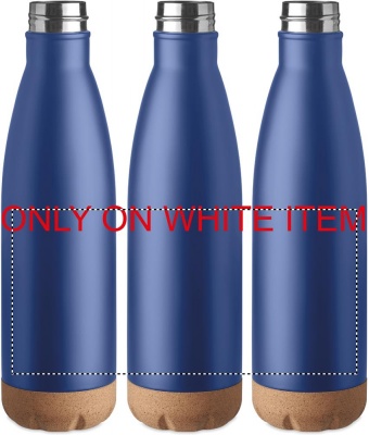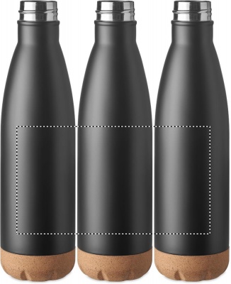 Double wall stainless steel vacuum bottle with cork base detail. Capacity: 500 ml. Leak free. Cork is 100% natural material. Due to its structural nature and surface porosity the final print result per item may have deviations.