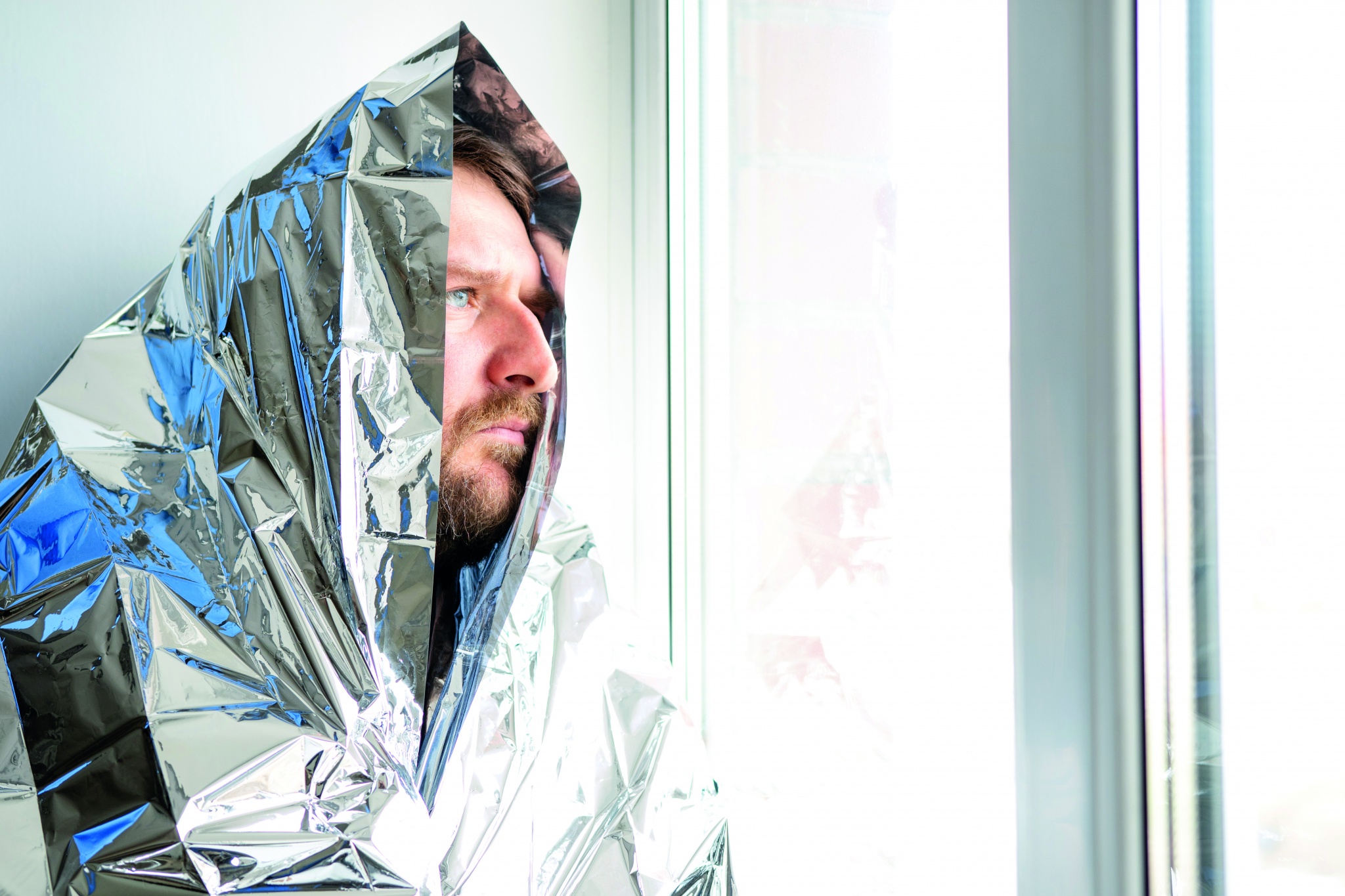 Emergency blanket in RPET polyester drawcord pouch. Size blanket: 130 x 210 cm.