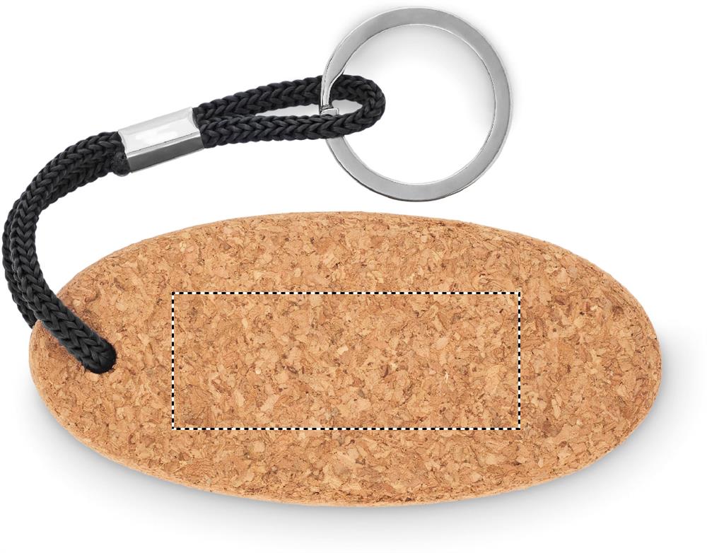 Oval floating cork key ring with braided rope. Cork is a natural material, due to its structural nature and surface porosity the final print result per item may have deviations.