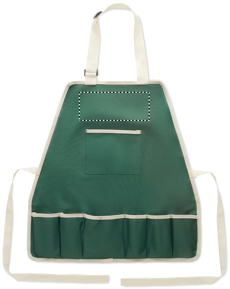Set of 7 garden tools presented in apron. 1 pair Garden Gloves, 2 forks, 1 scissors, 1 weeder and 2 trowels.