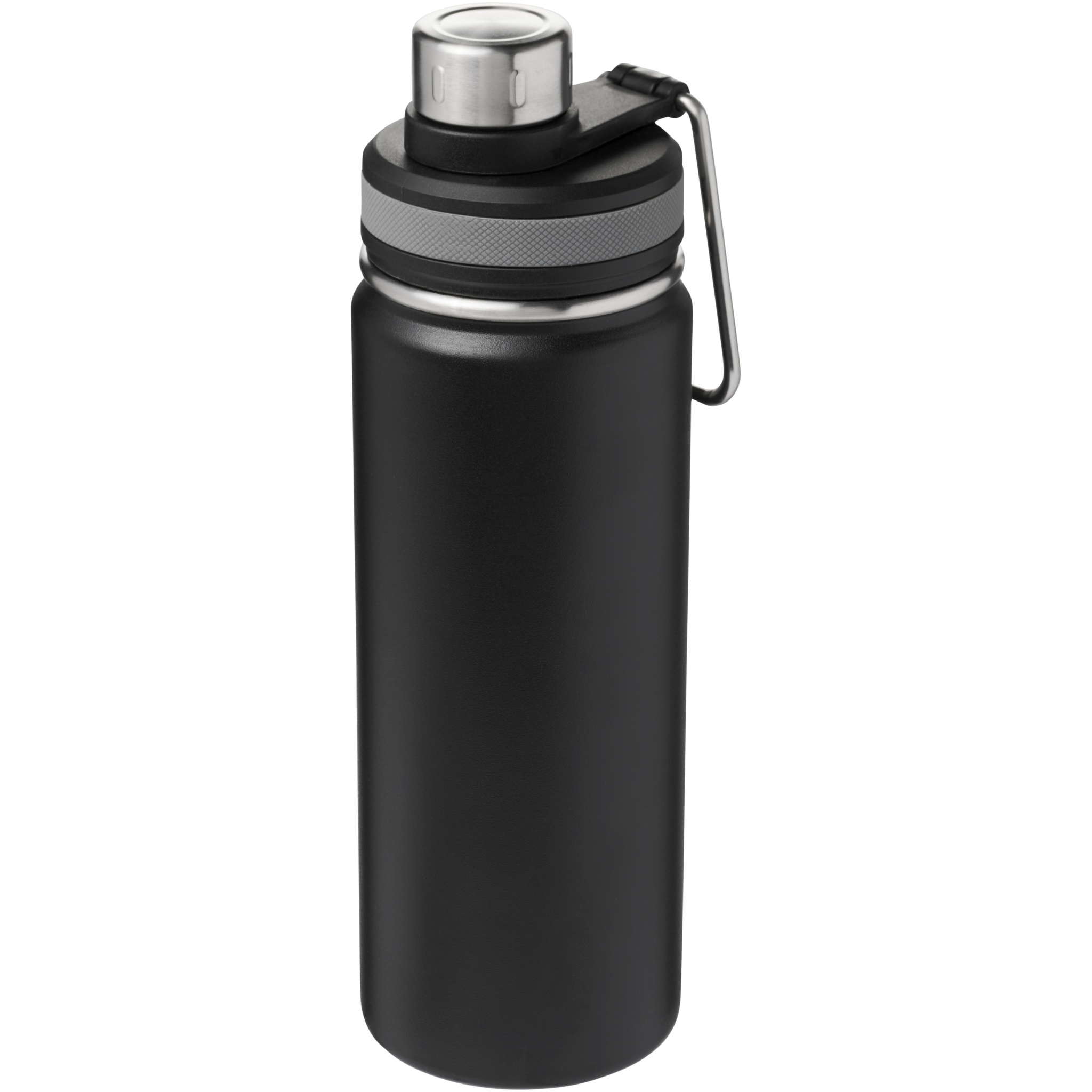 Double-walled stainless steel vacuum construction with copper insulation, which keeps beverages hot for at least 12 hours and cold for 48 hours. The construction also prevents condensation on the outside of the bottle. Features a screw-on top and stainless steel lid with a convenient handle for carrying. Dual opening construction for easy cleaning and filling. Volume capacity is 590 ml. Presented in an Avenue gift box.