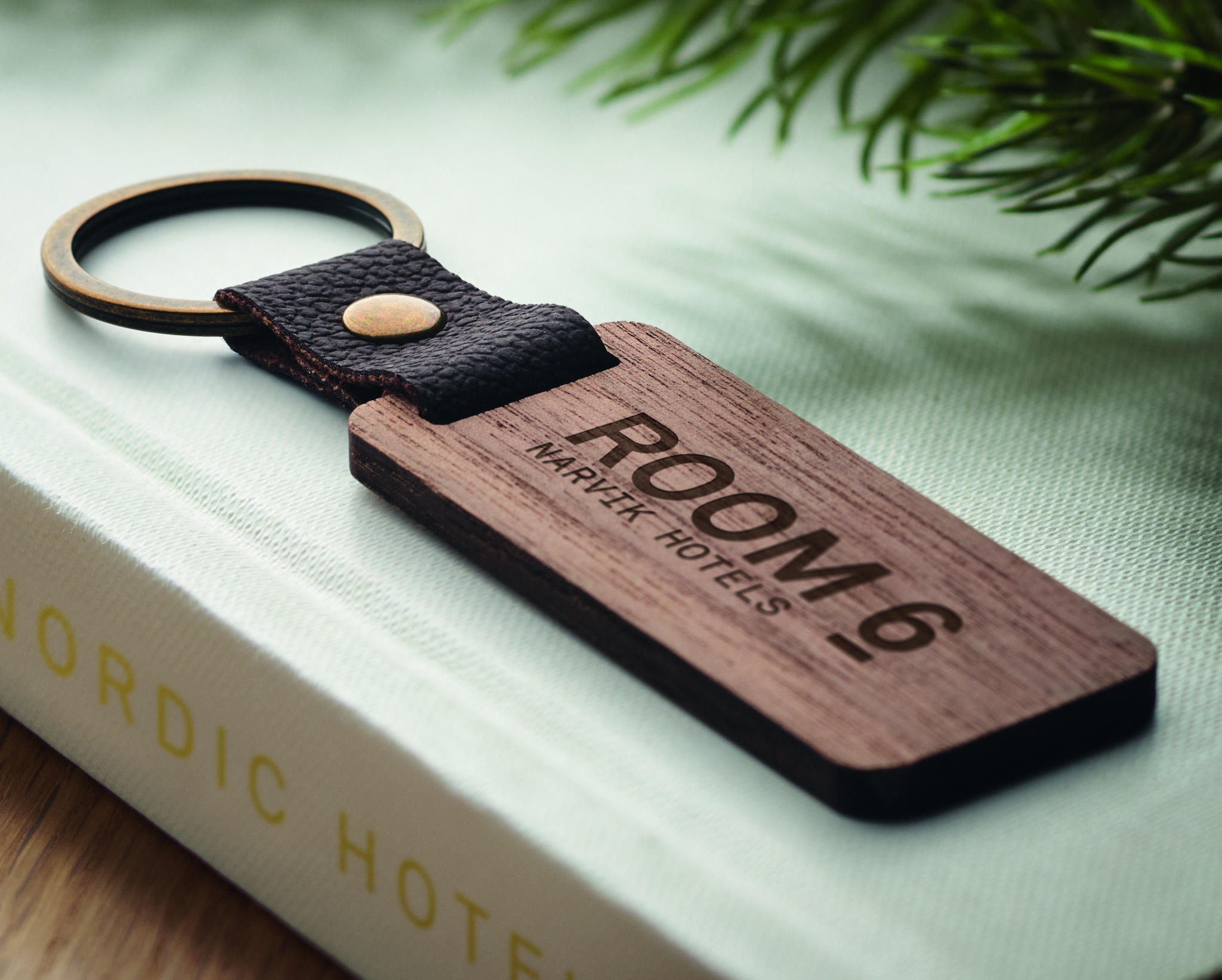 Logotrade promotional item image of: Key ring in walnut and PU Kokkola