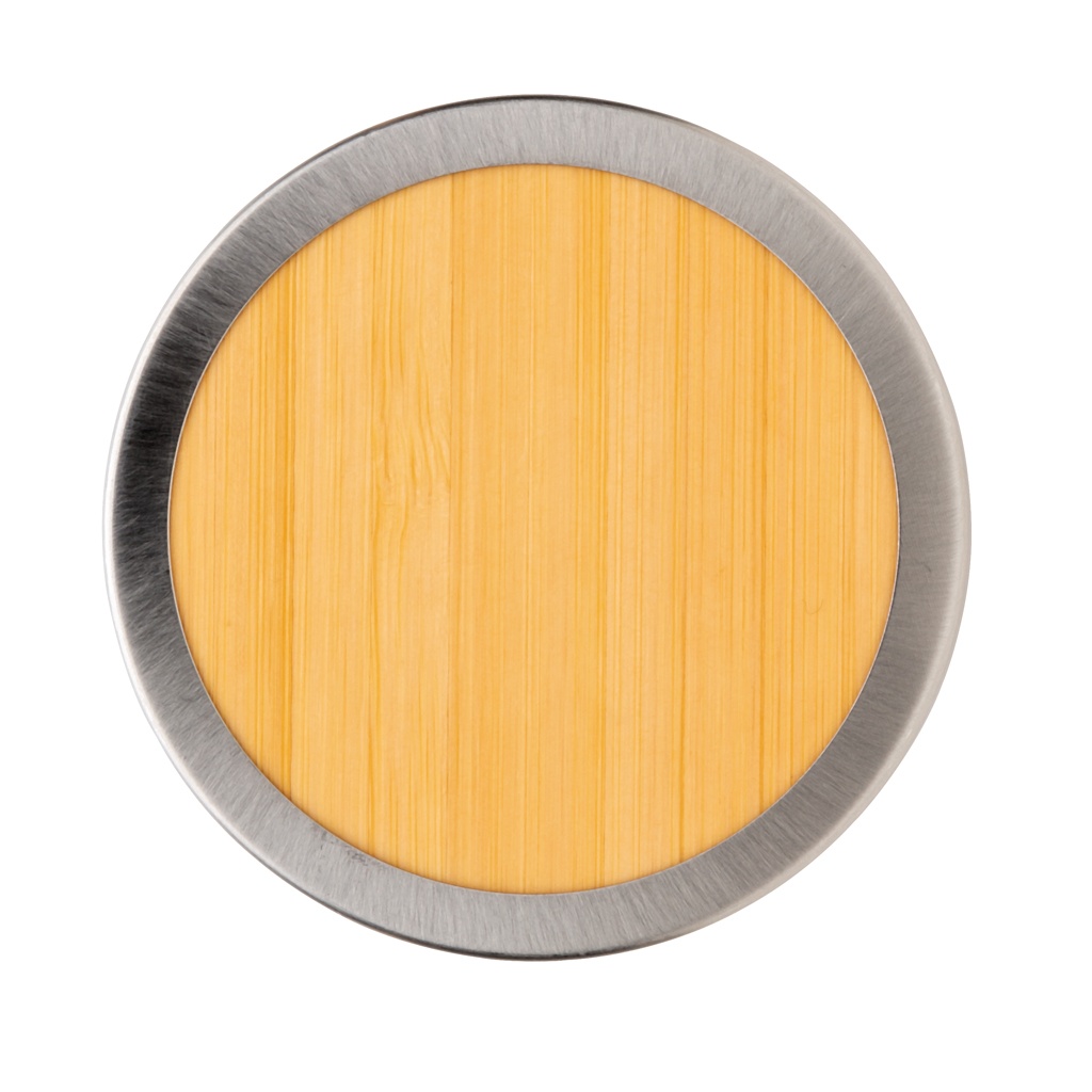 This unique vacuum leakproof bottle comes with 304 foodgrade and rustproof stainless steel interior walls and organic bamboo exterior. Keep your drinks hot for up to 5h and cold for up to 15h. Content: 300 ml.