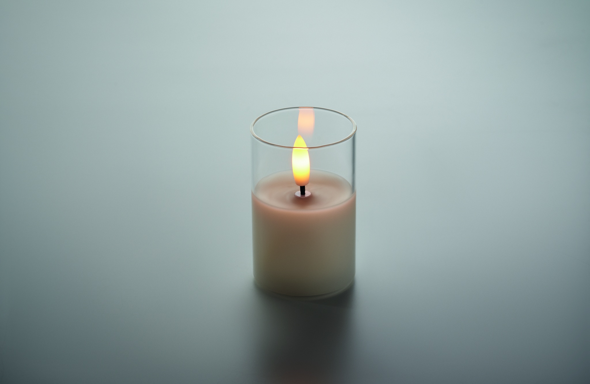 LED wax candle in glass holder