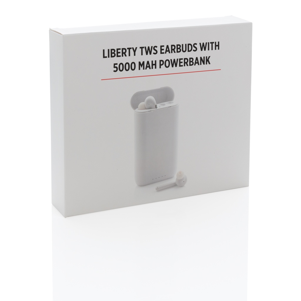 Logo trade promotional merchandise image of: Liberty TWS earbuds with 5.000 mAh powerbank