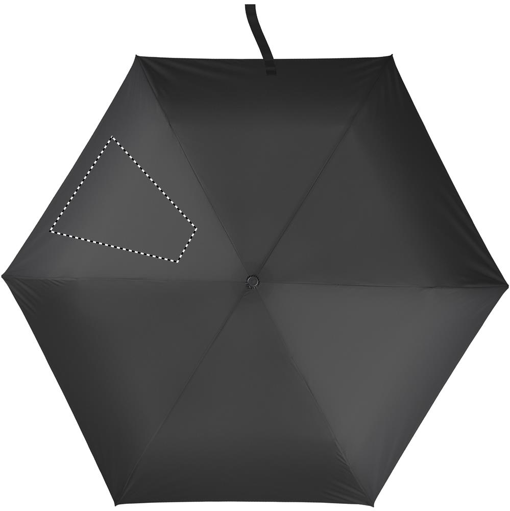 Mini 3 fold ultra light (100gr.) 19 inch manual open windproof umbrella in 30D pongee polyester with black carbon fibre shaft. Black carbon fibre ribs and plastic tips. Manual closure. Presented in pouch.