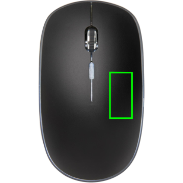 Comfortable design and re-chargeable wireless mouse with option to engrave your logo that will light up for extra exposure your brand. The mouse has a re-chargeable 300 mah lithium poly battery that can be re-charged in three hours. Connection speed 125 HZ via the included and easy to install USB dongle. With left and right click button and middle scroll/click button. The sensitivity of the mouse can easily be adjusted to your personal preference. Compatible with all recent Windows and Mac operating systems