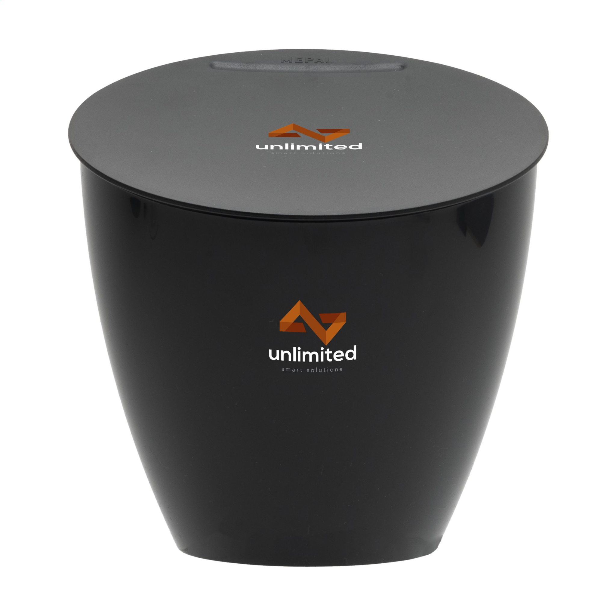Practical waste bin from the Mepal brand. Made from 100% recycled PP and ABS. The bin has a capacity of 2.2 liters and a large opening. An ideal waste bin for the countertop. Easy to open, move and clean. The lid can remain in the open position. Handy for collecting coffee pods, food scraps and small kitchen waste. BPA-free. Dishwasher safe placed in the top drawer. However, hand washing is recommended to preserve the imprint. Made in Holland. STOCK AVAILABILITY: Up to 1000 pcs accessible within 10 working days plus standard lead-time. Subject to availability.