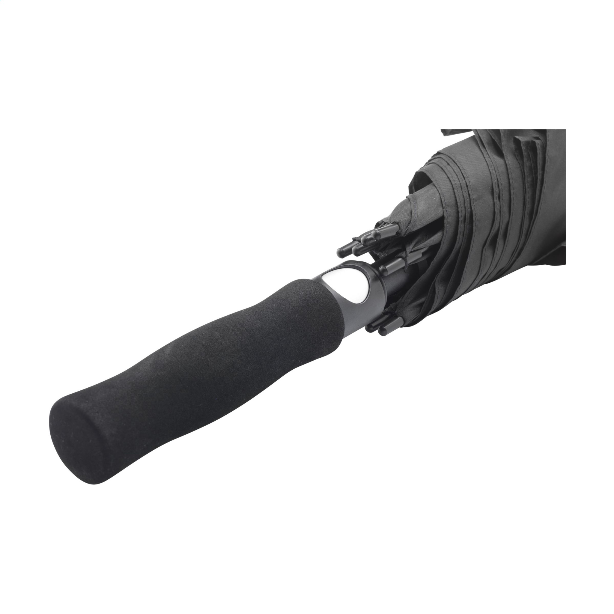 WoW! Umbrella with a canopy in 2 colours, made from 190T RPET polyester. This striking umbrella has an extra-large screen diameter of no less than 120 cm. With automatic telescopic suspension (auto-open), a fibreglass frame and handle, EVA soft foam handle covering and velcro closure. This umbrella is partly made from recycled PET bottles.