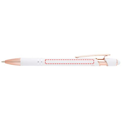The Nanna ballpoint pen with rose gold finish has a barrel made of recycled aluminium with a touch stylus made of silicone. Recycled aluminium reduces the amount of waste in landfills and helps to conserve natural resources aiming to reduce greenhouse emissions. Ink colour: Blue. Writing length: 800 metres. Nib size: 1.0 mm.