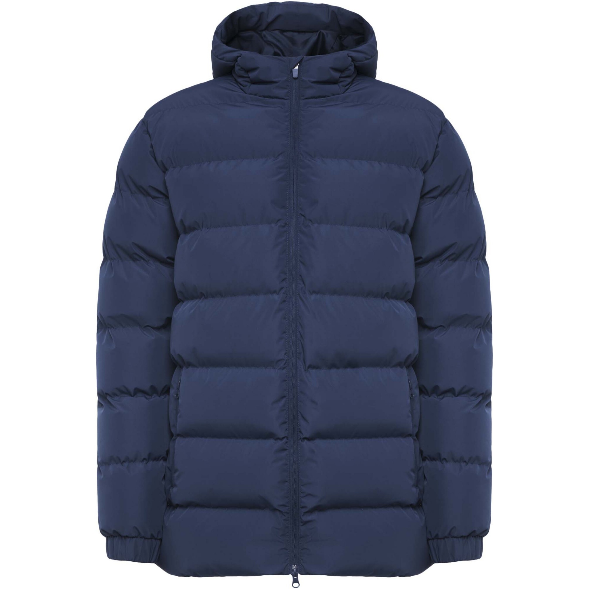 Padded sports parka. Hood with peak. Front zip with matching puller and chin protector. Elastic cuffs. Two side pockets with zip. Interior left chest pocket. Inner access for reprocessing. Removable label. Waterproof. Wind-proof.