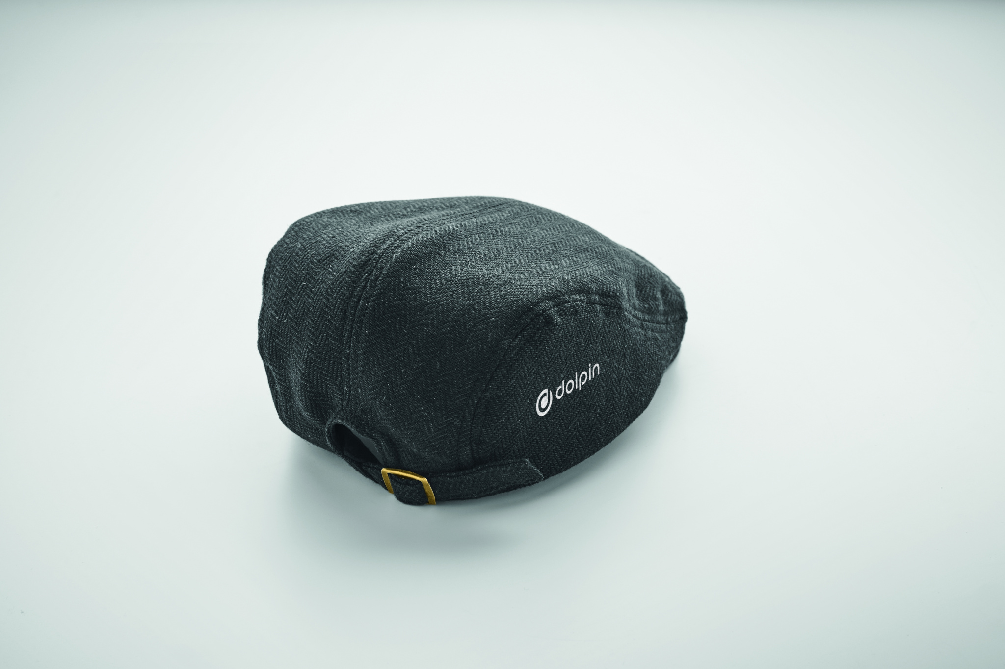 Newsboy flat cap mélange in 335 gr/m² polyester with metal buckle closure.